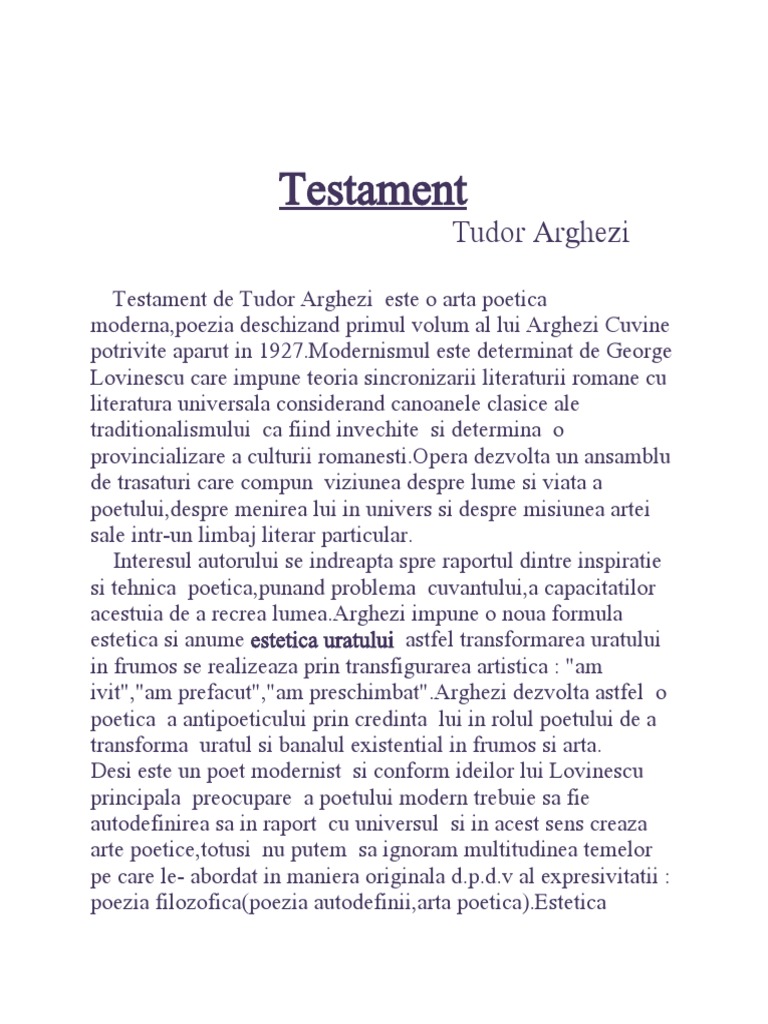 Testament, Tudor Arghezi | PDF
