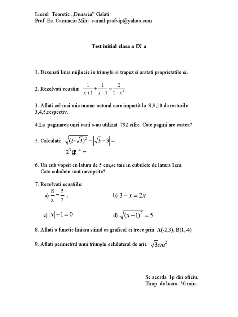 WebTest Ini?ial Limba Englez? +Barem Clasa a 9-a. Înv???mânt liceal - Limbi moderne - Teste - Clasa a 9-a; mon_bor81. 126 materiale. WebTest Ini?ial clasa a 9 a+Barem. Testul ini?ial se adreseaz? cu prec?dere elevilor de la liceele cu profil tehnologic sau elevilor cu un nivel intermediar al limbii.