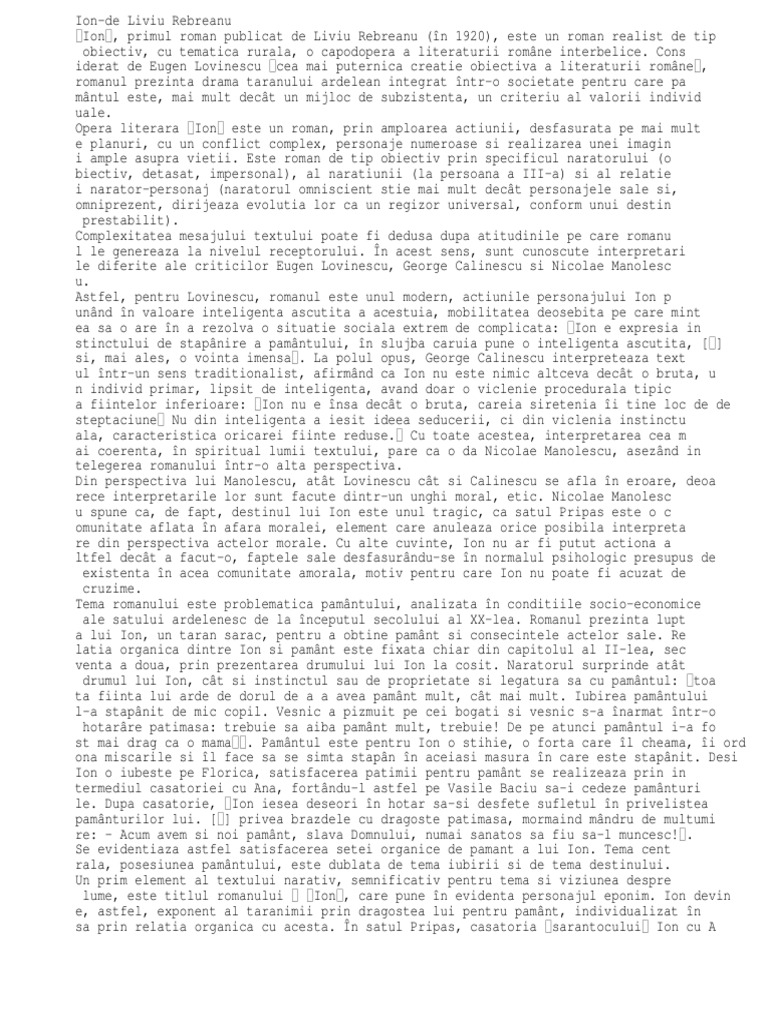 WebIon de Liviu Rebreanu -eseu. Liviu Rebreanu (1885-1944) este considerat creatorul romanului romanesc modern, intrucat 'Ion' este privit ca 'cea mai puternica creatie. WebFra?ilor, “Ion” e un roman la care Rebreanu a lucrat ani buni ?i se vede. Are tot ce e necesar unei pove?ti bune: un triunghi amoros, o c?s?torie din interes... WebIon este un roman social scris de Liviu Rebreanu ?i ap?rut în anul 1920. Liviu Rebreanu este creatorul romanului românesc modern, deoarece scrie primul roman. DismissTry Ask an. Web,, Ion. de Liviu Rebreanu-eseuLiviu Rebreanu (1885-1944) este considerat creatorul romanului romanesc modern, intrucat "Ion" este privit ca "cea mai puternica creatie. Webrezumat romanului ion de liviu rebreanu. R?spuns. Romanul se incepe cu descrierea satului Pripas.Se vorbeste despre via?a si tendin?ele lui Ion al Glanetasului. WebION de Liviu Rebreanu. Volumul I-Glasul p?mântului. I.ÃŽnceputul 1?m cum este aranjat satul, mai precis casele. Ni se prezint? casa domnului Herdelea,. WebPrin romanul “Ion”, Liviu Rebreanu a dat literaturii romane intaia creatie epica de mari dimensiuni in care se simte pulsatia vietii, scriitorul dovedind ca are vocatia. WebIon le roumain - Liviu Rebreanu de Liviu Rebreanu et d'autres livres, articles d'art et de collection similaires disponibles sur AbeBooks.fr. Passer au contenu principal..