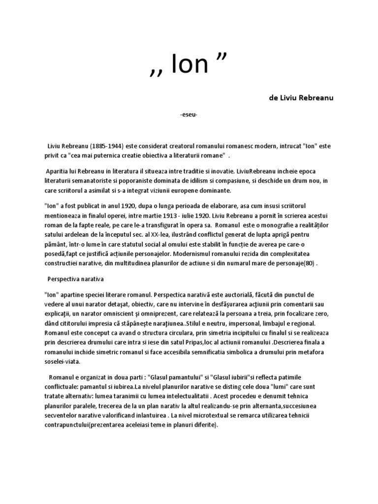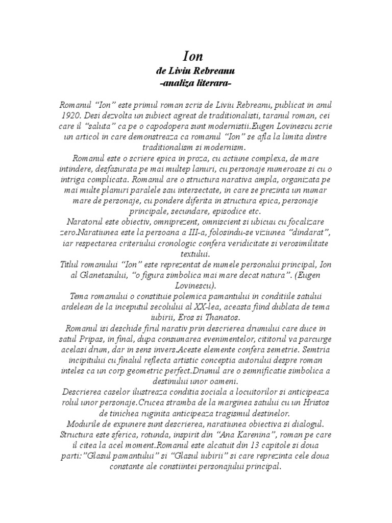 WebEseu Ion de Liviu Rebreanu ”Ion”, de Liviu Rebreanu- roman interbelic realist ÃŽn polemica interbelic? privitoare la roman, publicarea romanului Ion de Liviu Rebreanu în. WebPersonajul principal, Ion Pop al Glaneta?ului, este expresia mentalit??ii colective conform c?reia te po?i numi om doar dac? ai p?mânt. Zenobia adusese zestre, dar tat?l,. WebLiviu Rebreanu est né à Tîrli?ina, petit village des environs de Cluj, au cÅ“ur de la Transylvanie, alors sous la domination hongroise. Treize enfants lui succéderont au foyer.