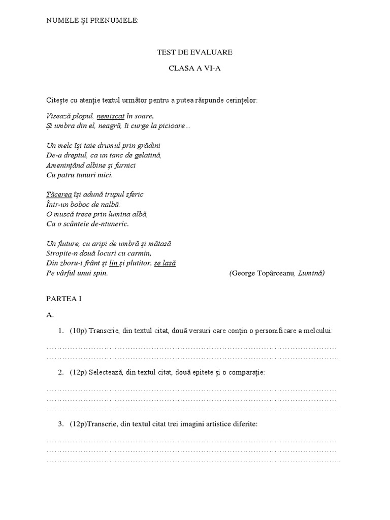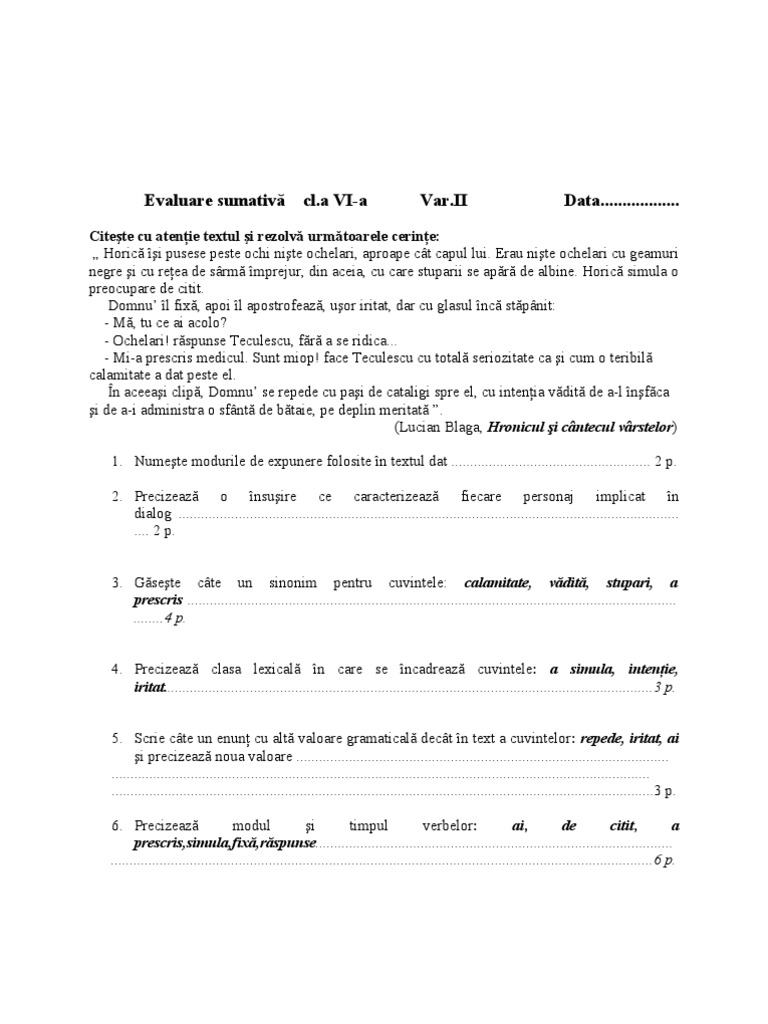 Test de evaluare clasa 6