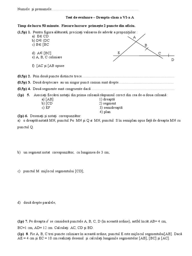 test clasa a 6 a