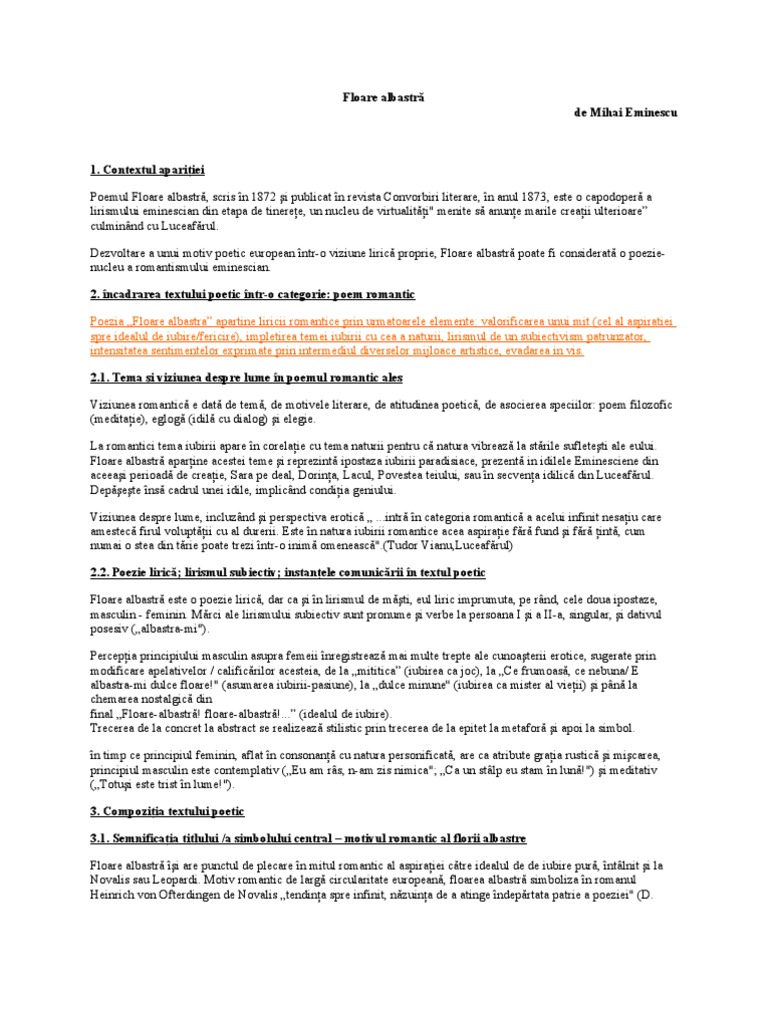 Bacalaureat - Mihai Eminescu: Floare Albastra (comentariu)