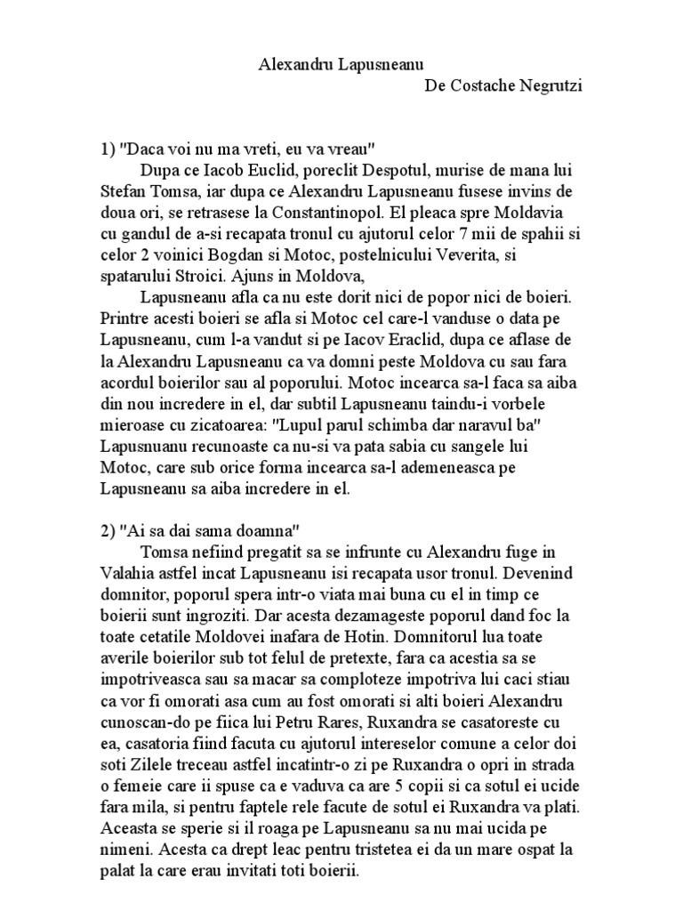 Alexandru Lapusneanu Rezumat Pe Capitole