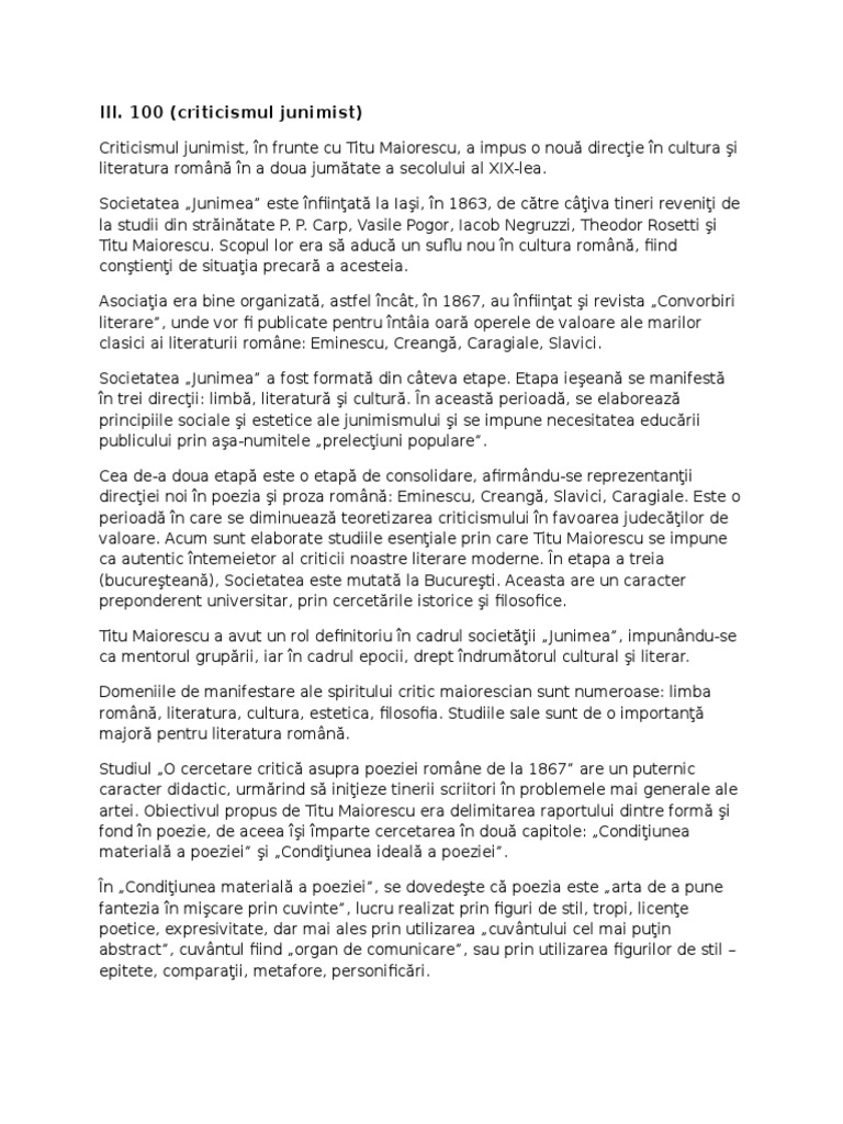 Subiectul III. 100 (Criticismul Junimist) - romana bac