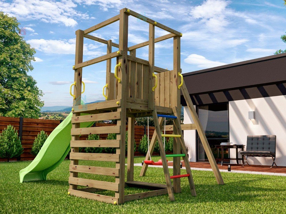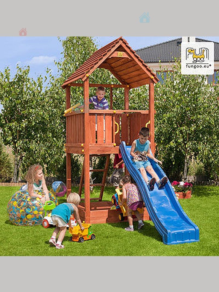 Teren de joaca din lemn pentru copii FUNGOO Joy turn cu topogan de la