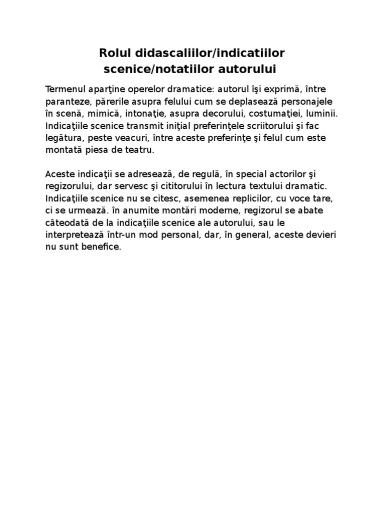 Rolul didascaliilor