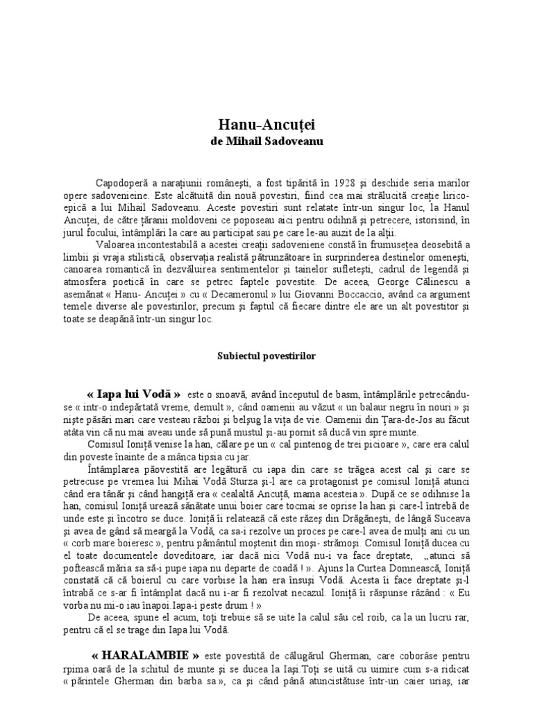 WebAtunci când venise unchiul la Medeleni prima oar?, ceruse s? fie culcat în odaia turceasc?, plin? de covoare orientale, m?su?e ar?be?ti ?i narghilele. Aici erau cinci. WebEficient si util,acest rezumat pentru care am primit nota 10 va poate ajuta foarte mult,deci in primul rand abonativa,dup? care dati like(aproape la fel de i... Websâmb?t?, 8 martie 2014. Rezumat - La Medeleni vol. I. Capitolul 1 - " Potemkin si Kami-Mura ". In acest capitol , autorul prezinta joaca lui Danut cu zmeul. WebScriitorul Ionel Teodoreanu prin romanul "La Medeleni" evidenteza procesul de formare a personalitatii eroilor sai principali : Olguta, Danut si Monica. La Medeleni este. WebFamilia Deleanu vinde mosia Medelenilor pe care o cumpara Rodica Bercali. Volumul se termina avandu-i pe Danut si pe Monica pe pervazul unei ferestre vorbind. WebLa Medeleni este o trilogie a scriitorului Ionel Teodoreanu a c?rei ac?iune se petrece în satul Medeleni din jude?ul Ia?i de ast?zi, la Ia?i ?i la Bucure?ti.... WebRezumat La Medeleni vol. 1. . Primul volum al romanului La Medeleni se nume?te „ Hotarul nestatornic ”. La începutul vacan?ei de var?, D?nu? Deleanu se afl?. WebRezumat Morometii - volumul 1 Romanul incepe cu intoarcerea de la camp a lui Ilie Moromete impreuna cu familia sa. Familia Morometilor este numeroasa, alcatuita din. WebRezumat. Familia avocatului Iorgu Deleanu se retrage vara la ?ar?, la mo?ia de la Medeleni, din Moldova. Mo?ia este a so?iei sale, Alice Deleanu, iar aceasta o.