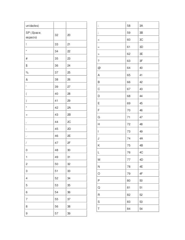 Webmerci d'avance ( ps : si c'est pas dans le bon thème de forum merci de me dire ou ça pourrais etre moins hors sujet ^^ ) Moi aussi. Posez votre question. A voir. WebThe US ASCII Character Set US ASCII, ANSI X3.4-1986 (ISO 646 International Reference Version) Codes 0 through 31 and 127 (decimal) are unprintable control characters. Code. Web34 lignesASCII DECIMAL AND HEXADECIMALCONVERSION TABLE. Hex. Hex. Hex. ! . ? NOTE: Decimal 0-31 (0x00-1F) and 127 (0x7F) are non-printable characters. WebTableau 1. Caractères ASCII de 33 à 126; Code ASCII Caractère Code ASCII Caractère Code ASCII Caractère; 33!point d'exclamation: 34 "guillemet double: 35 #signe dièse:. WebCode ASCII Shift a Ctrl Alt Num Caps Shift Caps Shift Num Esc 01 1B 1B 1B 1B 1B 1B 1B 1 12 23 ! 0 1 7800 31 31 31 31 0 24 33 @ 0 2 7900 0300 32 32 32 32 3 32 43 # 0 3 7A00 33. WebEnigme père fouras pdf - Forum Loisirs / Divertissements. Réponse énigme père fouras 250 - Forum Loisirs / Divertissements. Idée enigme saut en parachute -. WebCaractères ASCII de 33 à 126. Utilisez la table de caractères ASCII pour déterminer les caractères à utiliser pour les valeurs de départ et de sel du chiffrement de. WebHelpful information for converting ASCII, decimal, hexadecimal, octal, and binary values can be referenced in this table.