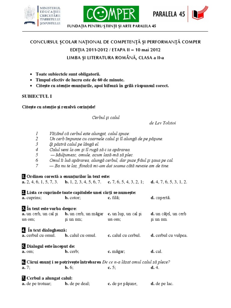 BAREME ROMANA COMPER 2020. Cum se rezolvau subiectele la...