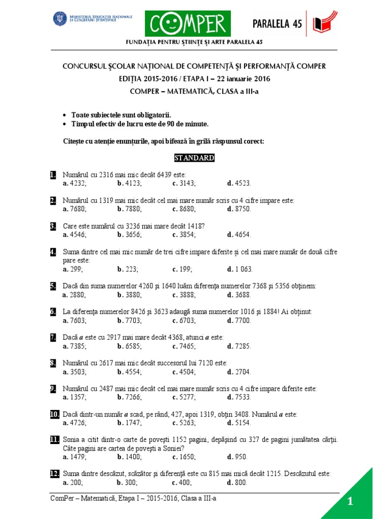 Comper-Matematica Clasa3 Etapa1 2015-2016