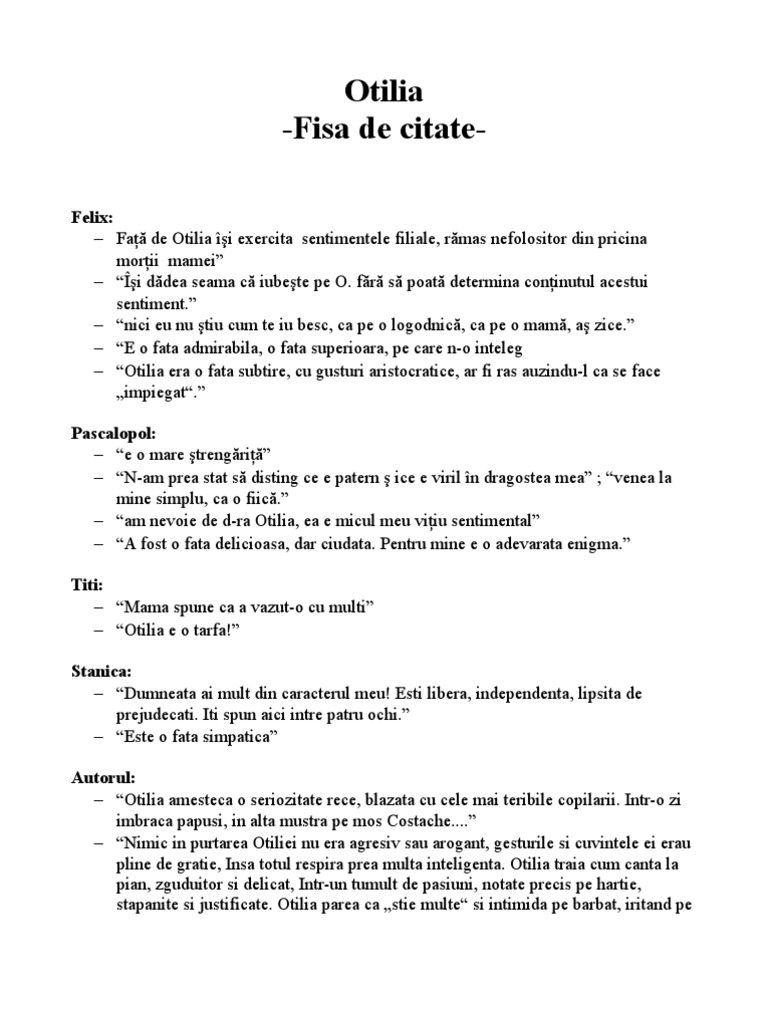 WebScribd è il più grande sito di social reading e publishing al mondo. WebDownload Enigma Otiliei - Fisa De Lectura. Type: PDF TXT; Date: October 2019; Size: 124.5KB; Author: Lia Popescu; This document was uploaded by user and they confirmed. WebScribd es red social de lectura y publicación más importante del mundo. Scribd es red social de lectura y publicación más importante del mundo. Abrir el menú de navegación. Cerrar. WebEnigma Otiliei (titlu iniial: Prinii Otiliei) de George Clinesc (1938) Scris de Cristina Stancu 1 July 2013 in categoria Recenzii pentru BAC Gen: epic Specie: roman realist de natur. WebFi?? de lucru util?. 28.08.2022 14:56. Nivel de dificultate: dificil. O fi?? util? pentru recapitularea romanului realist de tip balzacian, textul apar?inând unui autor. WebAm terminat lectura (data): 13 Tipul de personaj principal, real Tr?s?turi Citate fizice: fa?? lung?, ten m?sliniu, t?ietur? elenic? a nasului „ (...) un tân?r de vreo optsprezece ani,. WebEnigma Otiliei de George Calinescu -comentariu. ENIGMA OTILIEI, George C?linescu - comentariu literar - La apari?ia “Enigmei Otiliei”, în 1938 (în dou? volume), romanul, ca. WebEste considerat drept unul dintre cei mai importani critici literari romni din toate timpurile, alturi de Titu Maiorescu sau Eugen Lovinescu. i semneaz ntotdeauna articolele cu. Web„Enigma Otiliei” este un roman obiectiv, realist. Tem?: povestea unei mo?teniri Problematic?: egoismul lui Cos tache Giurgiuveanu se confrunta cu egoismul.
