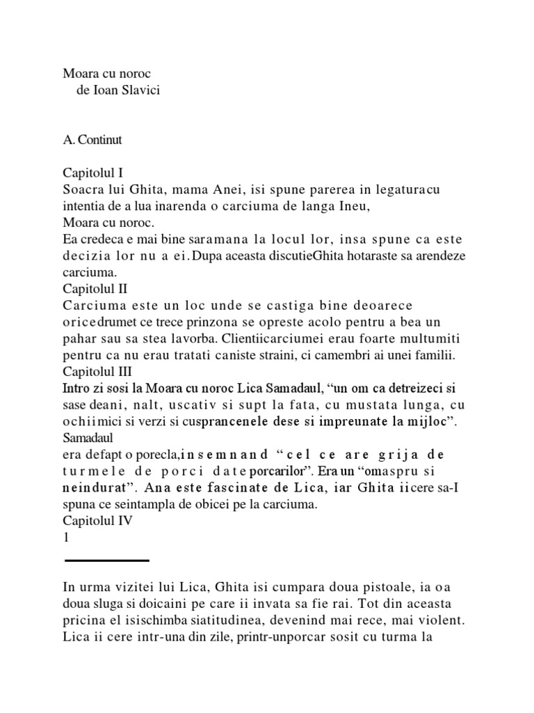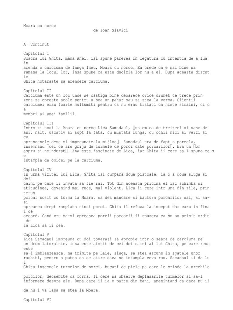 Moara Cu Noroc Rezumat Pe Capitole