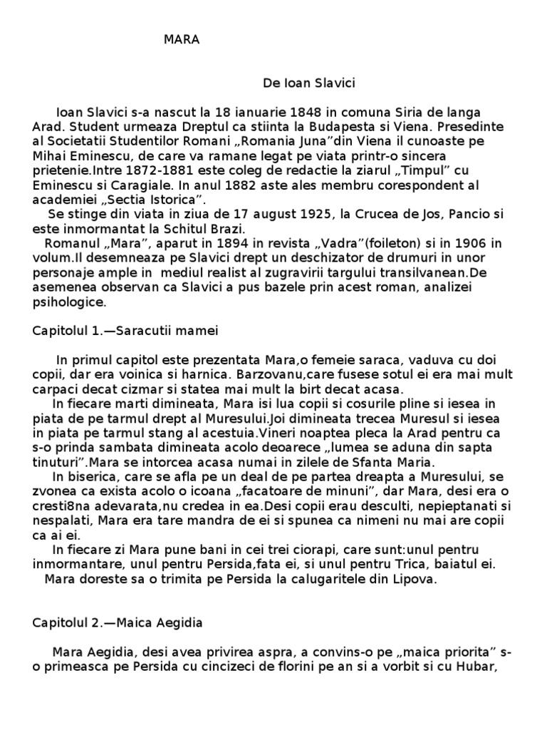 Rezumat pe capitole "Mara" scrisa de Ioan Slavici - Rezumate c?r?i