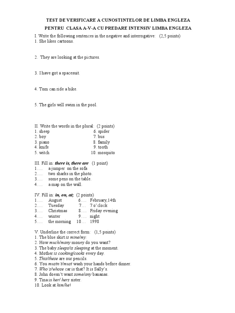 Test Initial Clasa 5