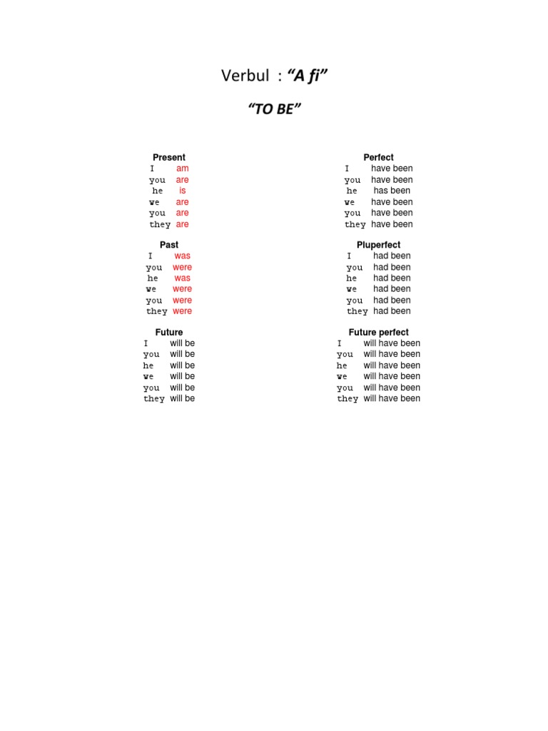 Verbul A Fi Engleza