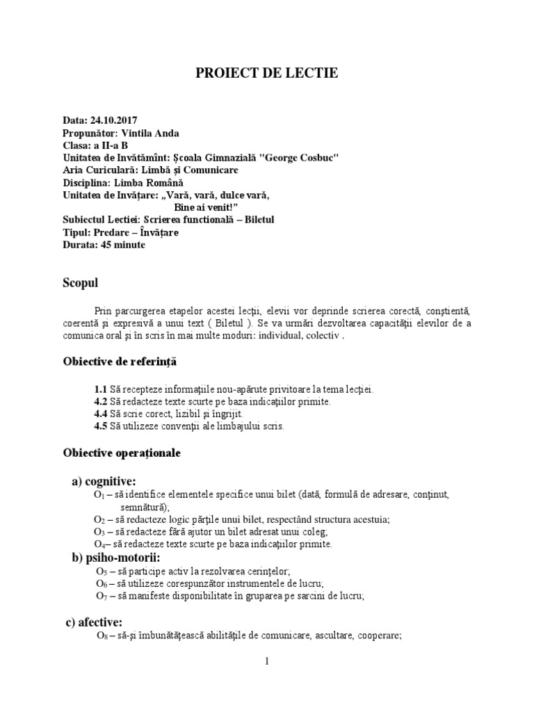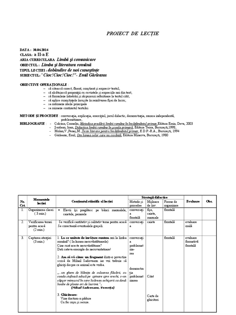 Proiect De Lectie Clasa A 2 A Comunicare In Limba Romana - Lec?ie Blog