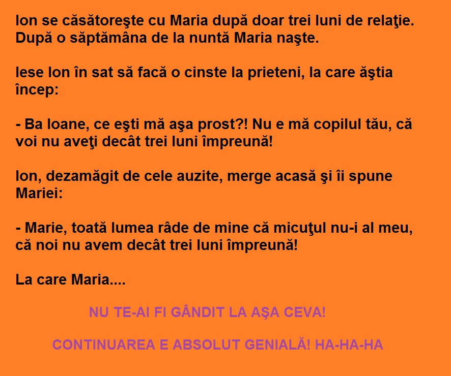 Bancul zilei: Ion se c?s?tore?te cu Maria dup? doar trei luni de