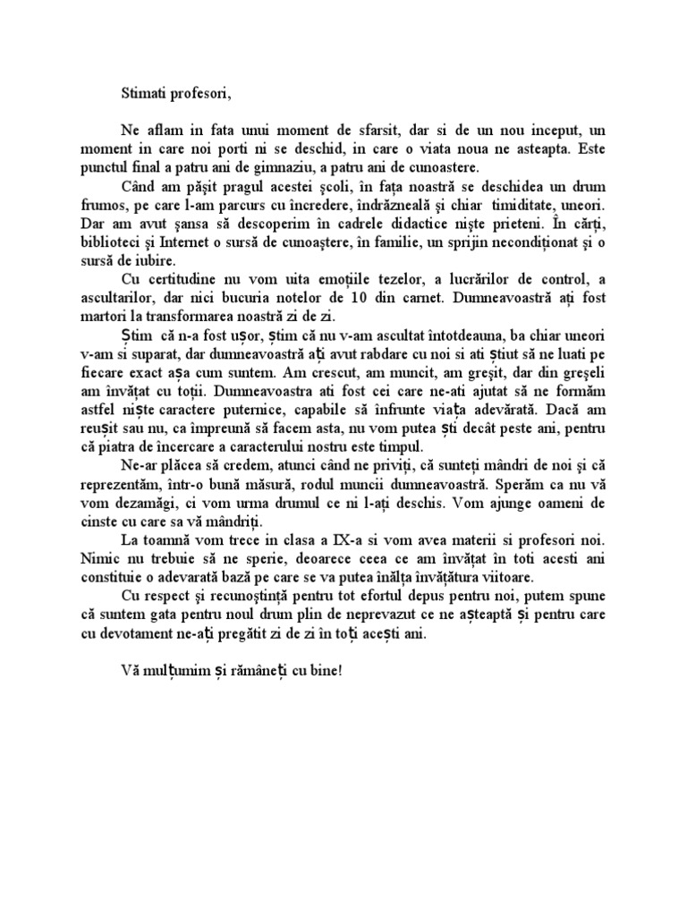 Discurs Absolvire Clasa A VIII-A | PDF